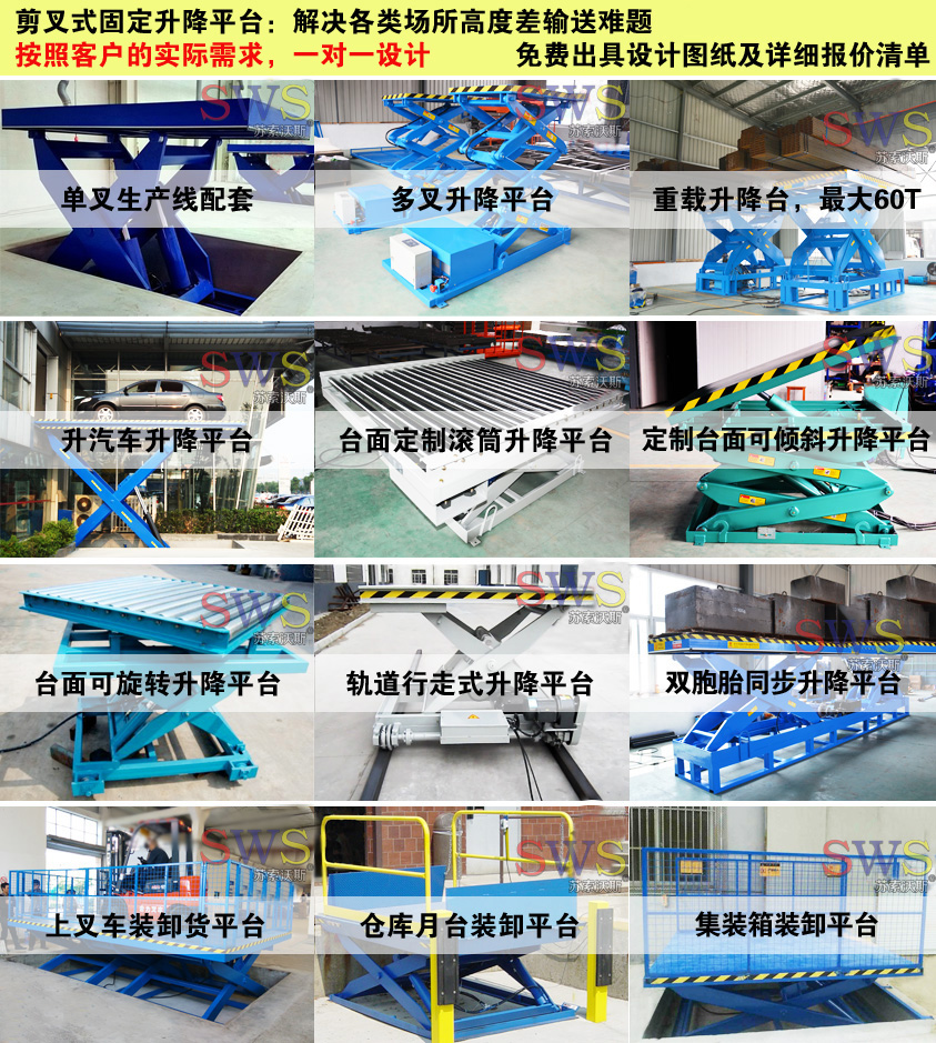 它普遍用在工件裝配時(shí)調(diào)節(jié)工件高度,大型設(shè)備裝配時(shí)部件舉升,大型機(jī)床物料上料、下料以及機(jī)器保養(yǎng)、定位、組裝、工件裝配、倉(cāng)庫(kù)、車庫(kù)、工作車間等生產(chǎn)流水線高度差之間貨物運(yùn)送;